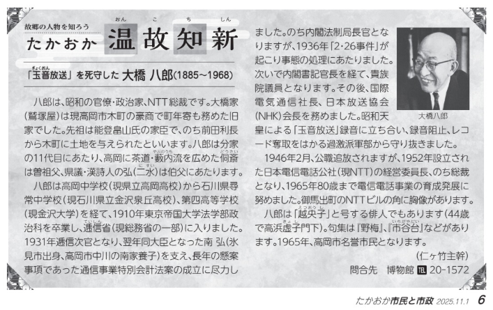 「故郷の人物を知ろう/たかおか温故知新」